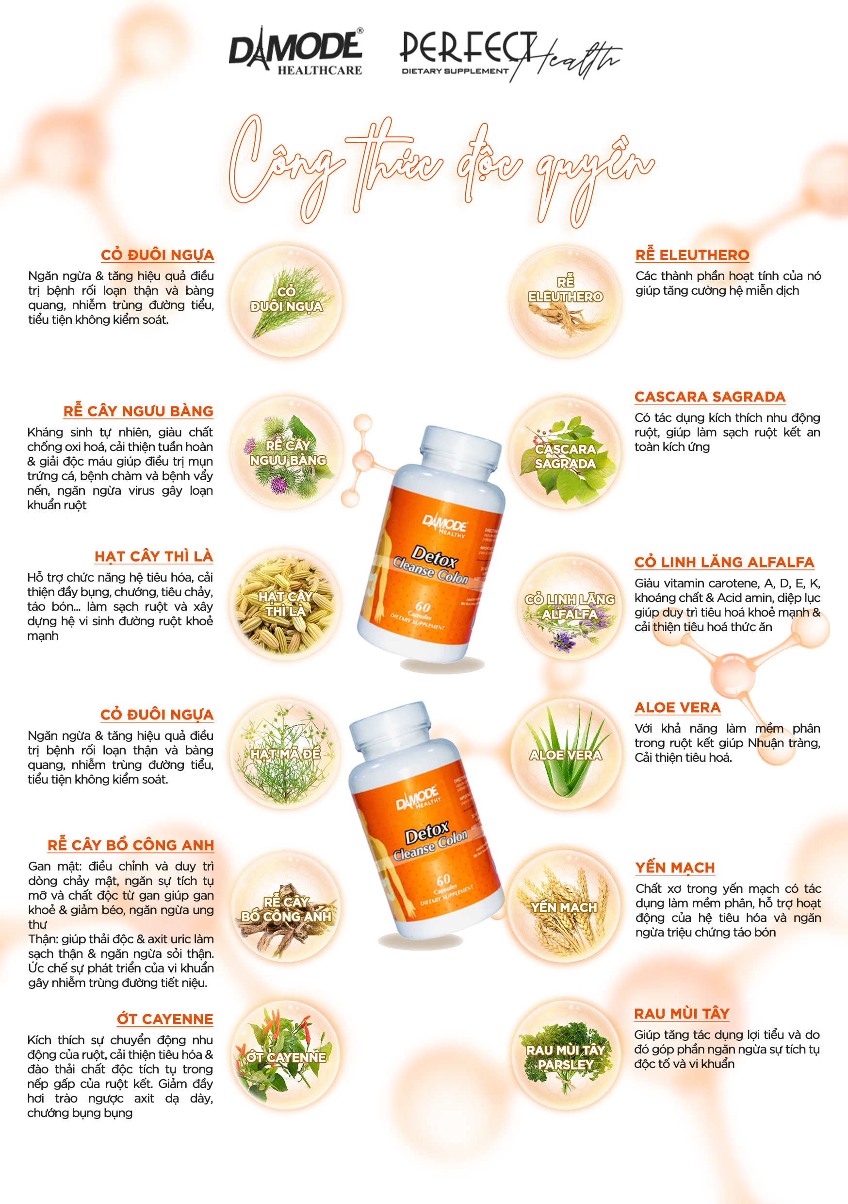 Công dụng: Đào thải đôc tố hệ thống tiêu hóa (đường ruột, gan, thận, bàng quang...), tăng sức đề kháng, phòng chống bệnh tật, ngăn ngừa ung thư